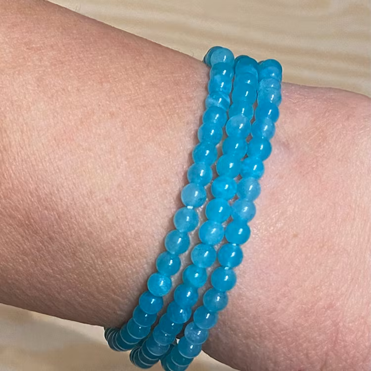 Ett elastiskt armband av Amasonit (Amazonsten), med 42st 4mm pärlor.