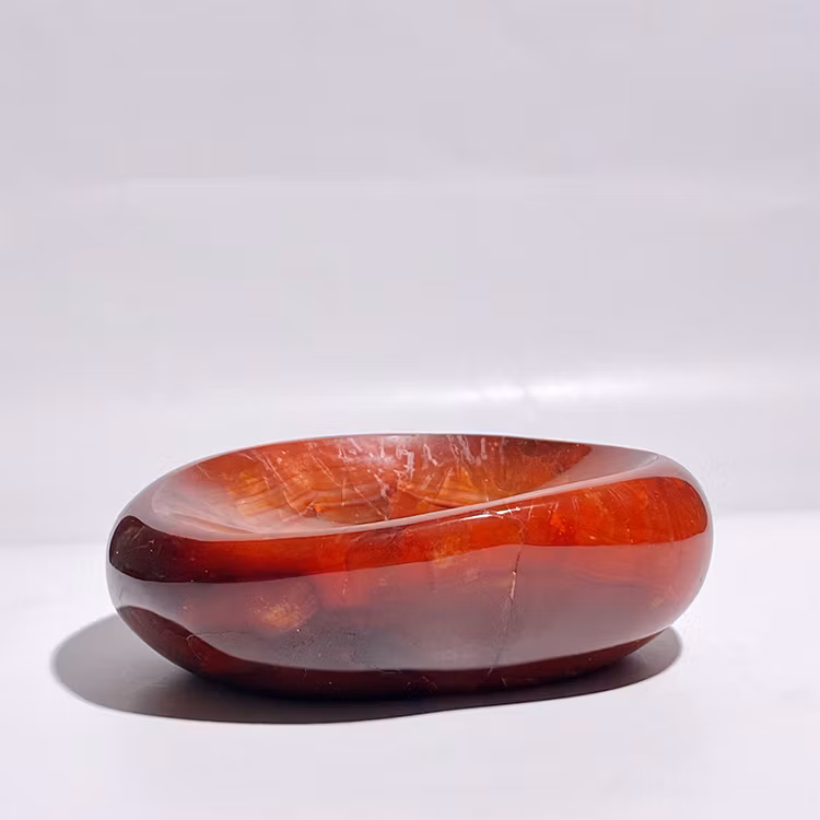 Karneol skål från Madagaskar, en vacker dekorativ skål att ladda dina kristaller eller förvara smycken på.