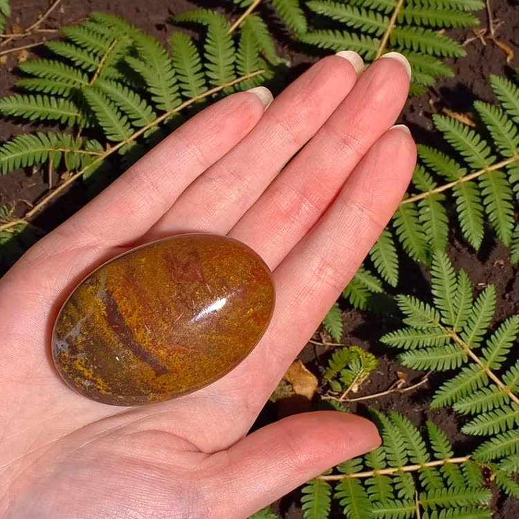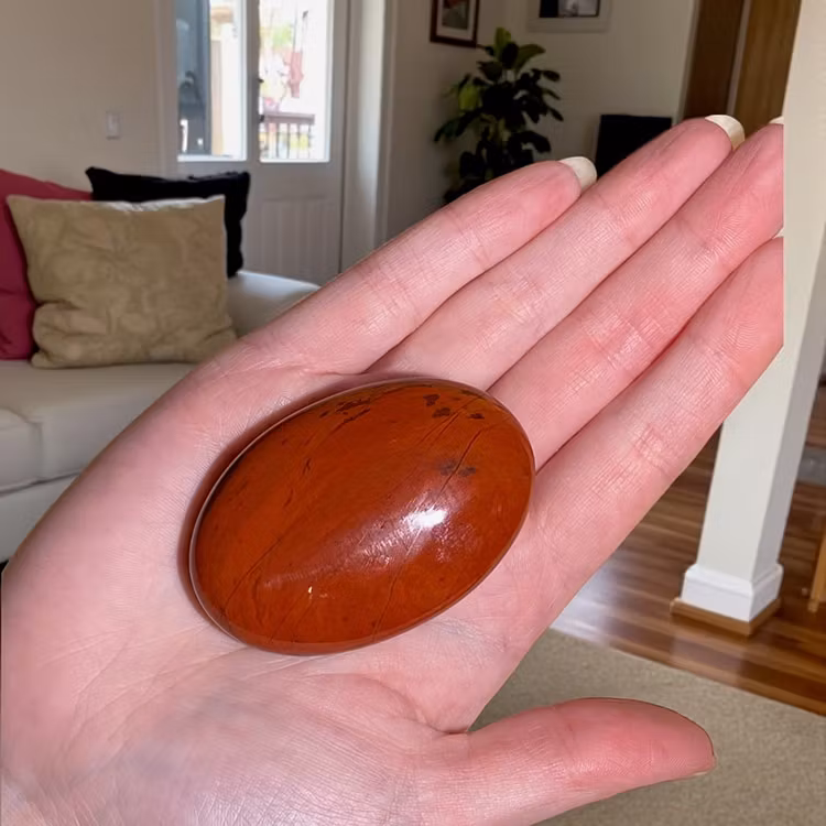 Brecci jaspis bär på en stadig och grundande energi som hjälper dig att landa i dig själv när livet känns intensivt eller krävande. Den passar dig som vill stärka din uthållighet, väcka din inre drivkraft och samtidigt behålla lugnet. Många upplever att den ger ny energi till kroppen och skapar en känsla av stabilitet och balans, särskilt när arbete eller personliga utmaningar känns överväldigande. Den röda tonen förknippas ofta med livskraft och mod, och stenen sägs kunna stärka både viljestyrka och självförtroende.