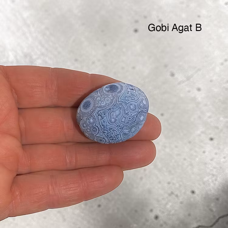 Varje handsten i gobiagat är unik i färg, form och mönster, vilket gör varje sten personlig och skapad av naturens eget långsamma och tålmodiga arbete.