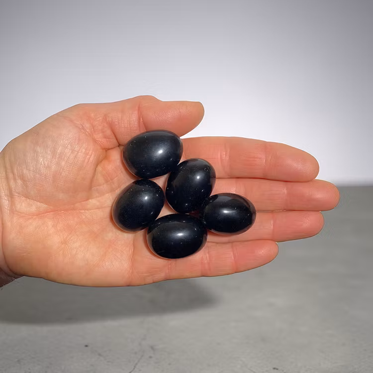 Trumlade stenar av svart obsidian i A-kvalitet från Mexiko.
